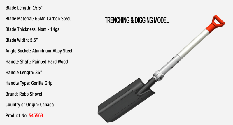 "This is a Proudly Canadian innovation from Indy One. It’s time to retire that old, straight-stick shovel that’s been punishing your lower back for years. Upgrade to The Robo Shovels and feel the difference that proper leverage makes."